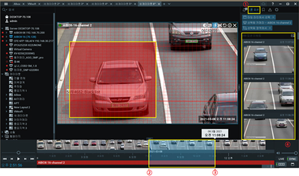 영역검색, 객체검색, 이벤트 검색 등을 통한 검색시간단축 및 데이터 필터링이 가능합니다.