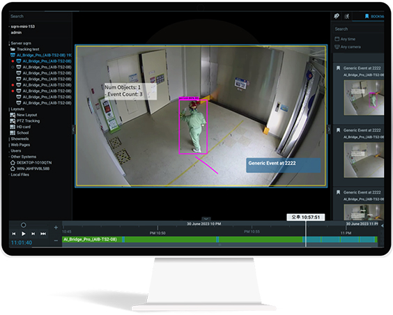 메타데이터를 통한 안정적인 이벤트 검출을 통해 관제요원에게 필요한 알림을 전달하여 요원 1인당 더 많은 구역에 대한 감시가 가능하며 긴급상황등에 대한 조기경보 기능으로 위급한 상황에 더 빠르게 대처가 가능합니다.
